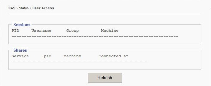 This page displays all users currently connected to the EliteNAS system. The page also displays open shared files and folders.