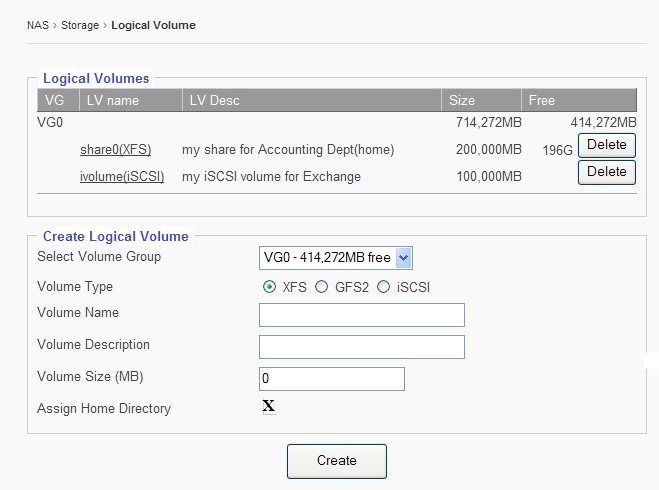 Step-1: Enable the “Assign Home Directory” option for the selected XFS volume in the “Storage - Logical Volumes” page. See below.