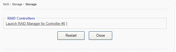 Once the RAID controller has finished volume initialization, click “Restart” for the NAS to recognize the newly created RAID volume as the “Physical Volume”.