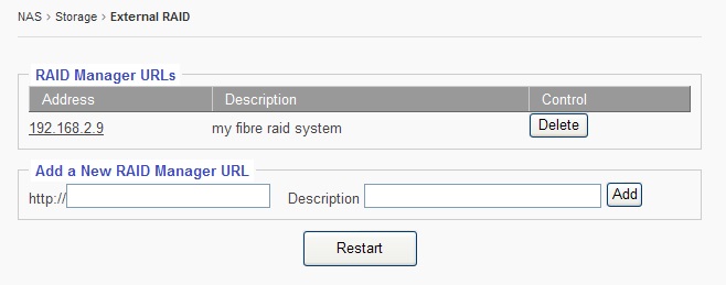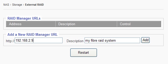 Fill the URL field with IP address of the External RAID’s GUI