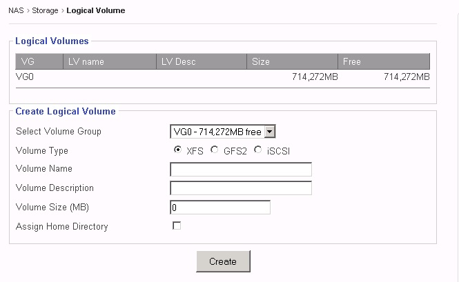 share0 – It is a XFS share from VG0, it has size of 200,000MB, which is all free.